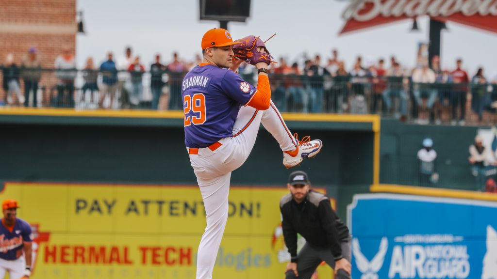 The performance came in the Tigers’ Palmetto Series with South Carolina, as Sharman helped his team earn a 4-1 win on February 28 even the series. He managed to surrender just one earned run on four hits in his nine-inning outing to improve to 3-0 on the season. Of the 78 pitches he threw, 67 of them were for strikes.